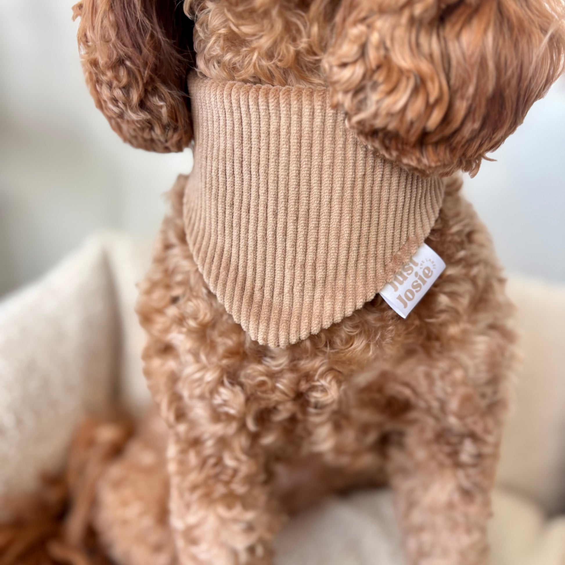 Das Halstuch ist aus einem elastischen Cord Stoff hergestellt und bietet somit einen sehr angenehmen Tragekomfort für deinen Hund.