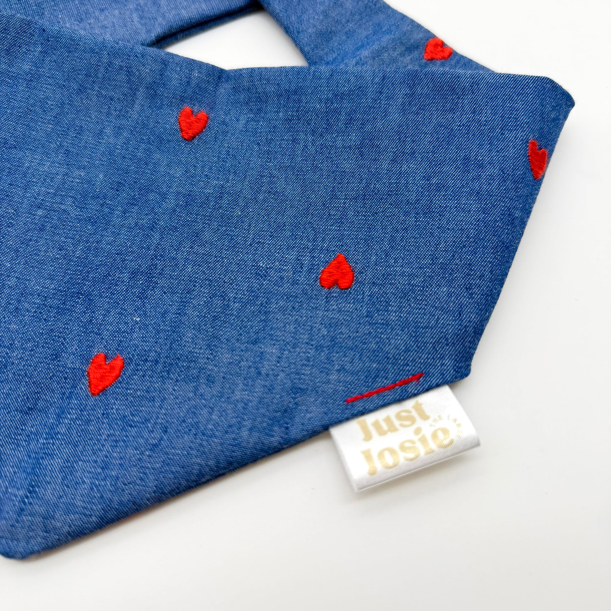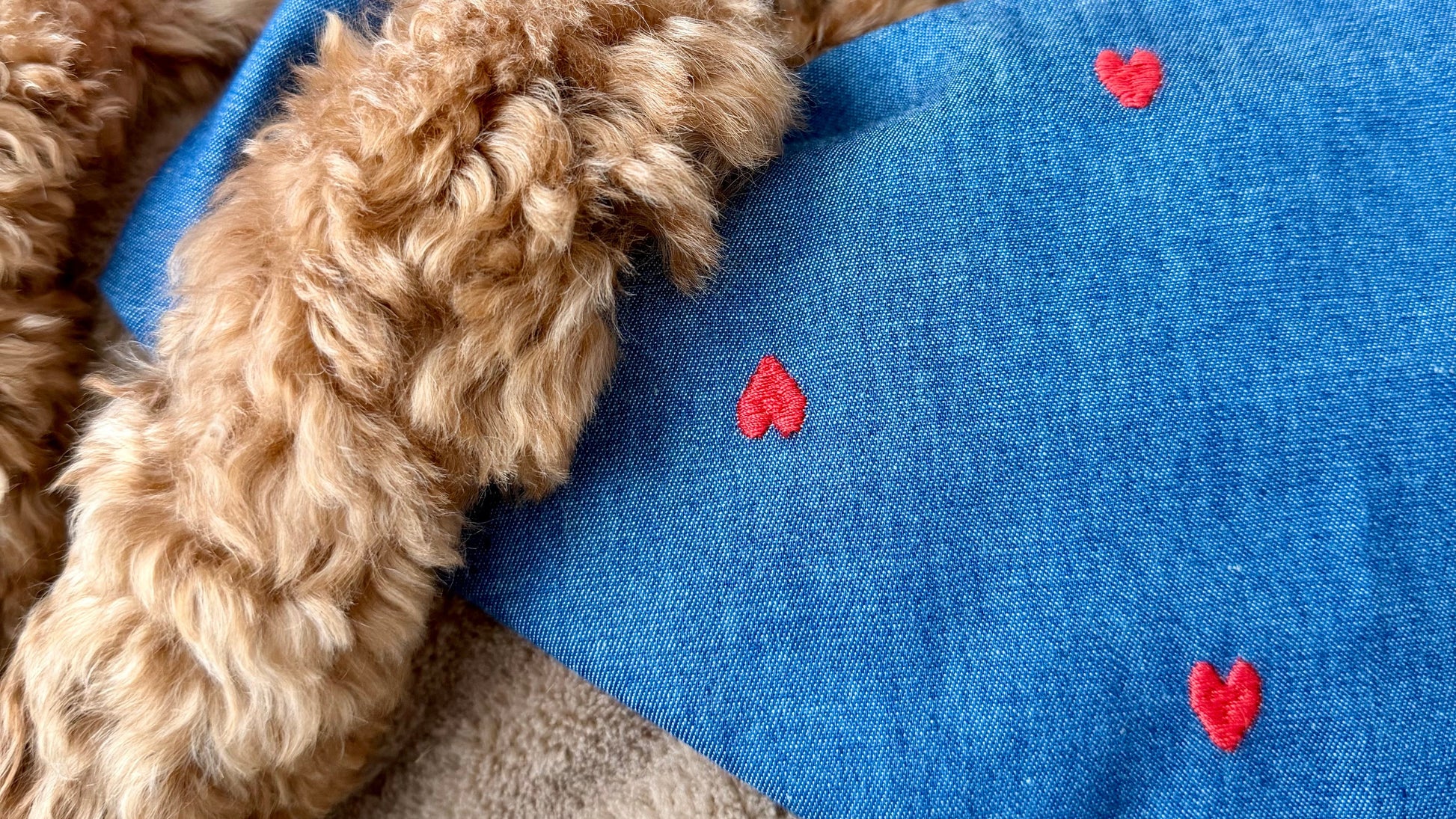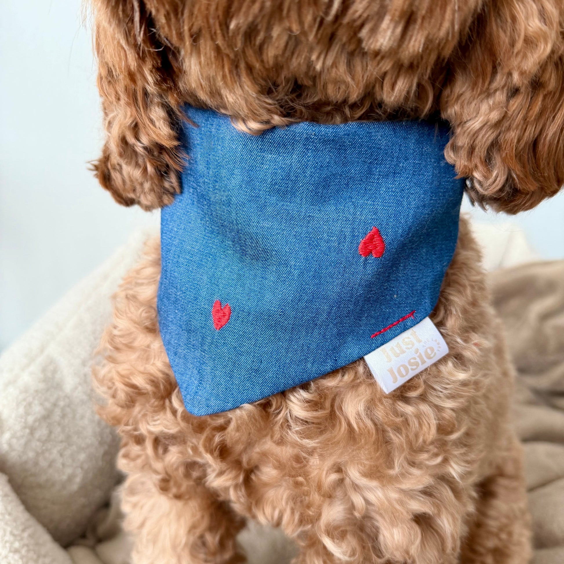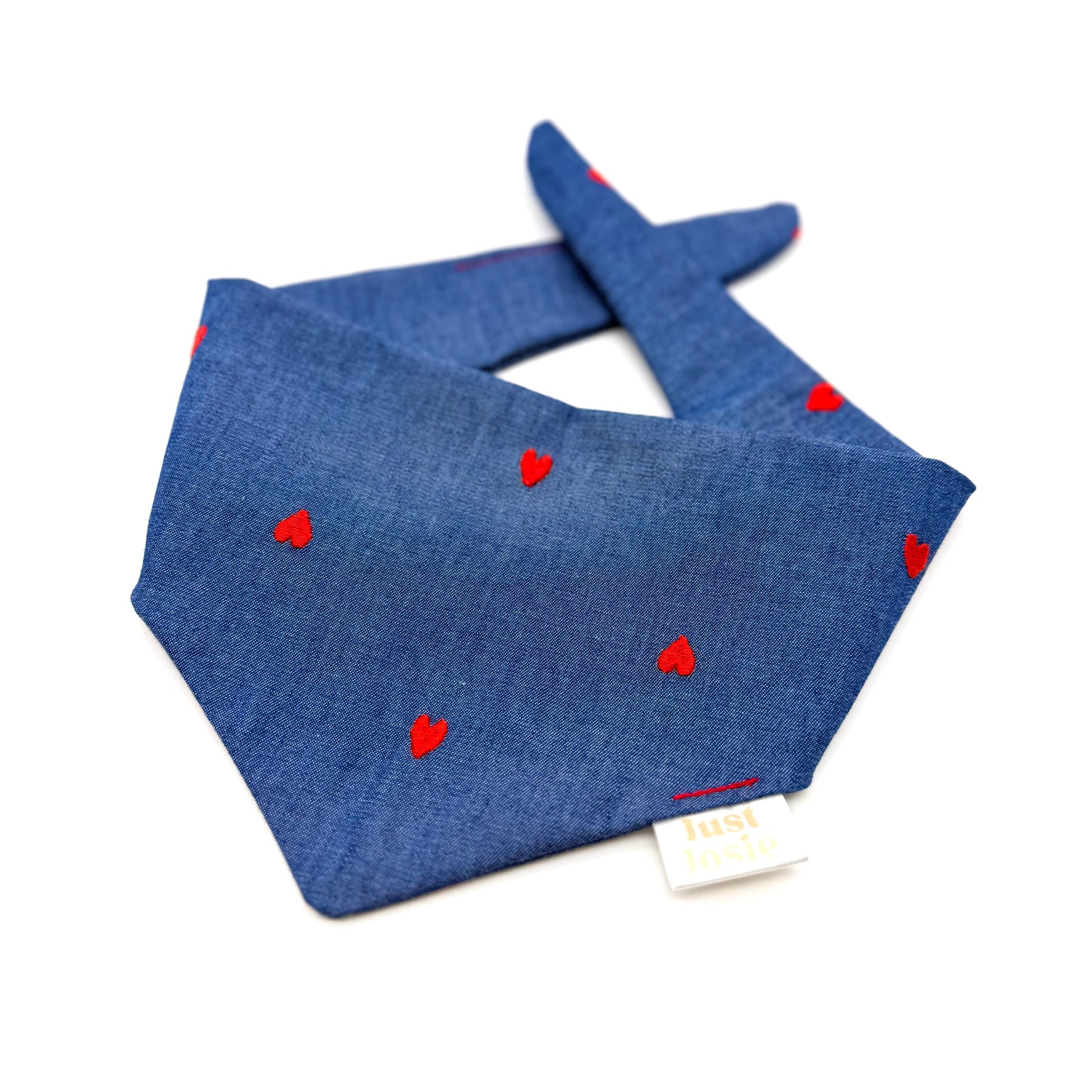 Das Halstuch ist aus einem leichten Baumwollstoff mit Herzbestickung hergestellt und bietet somit einen sehr angenehmen Tragekomfort für deinen Hund.