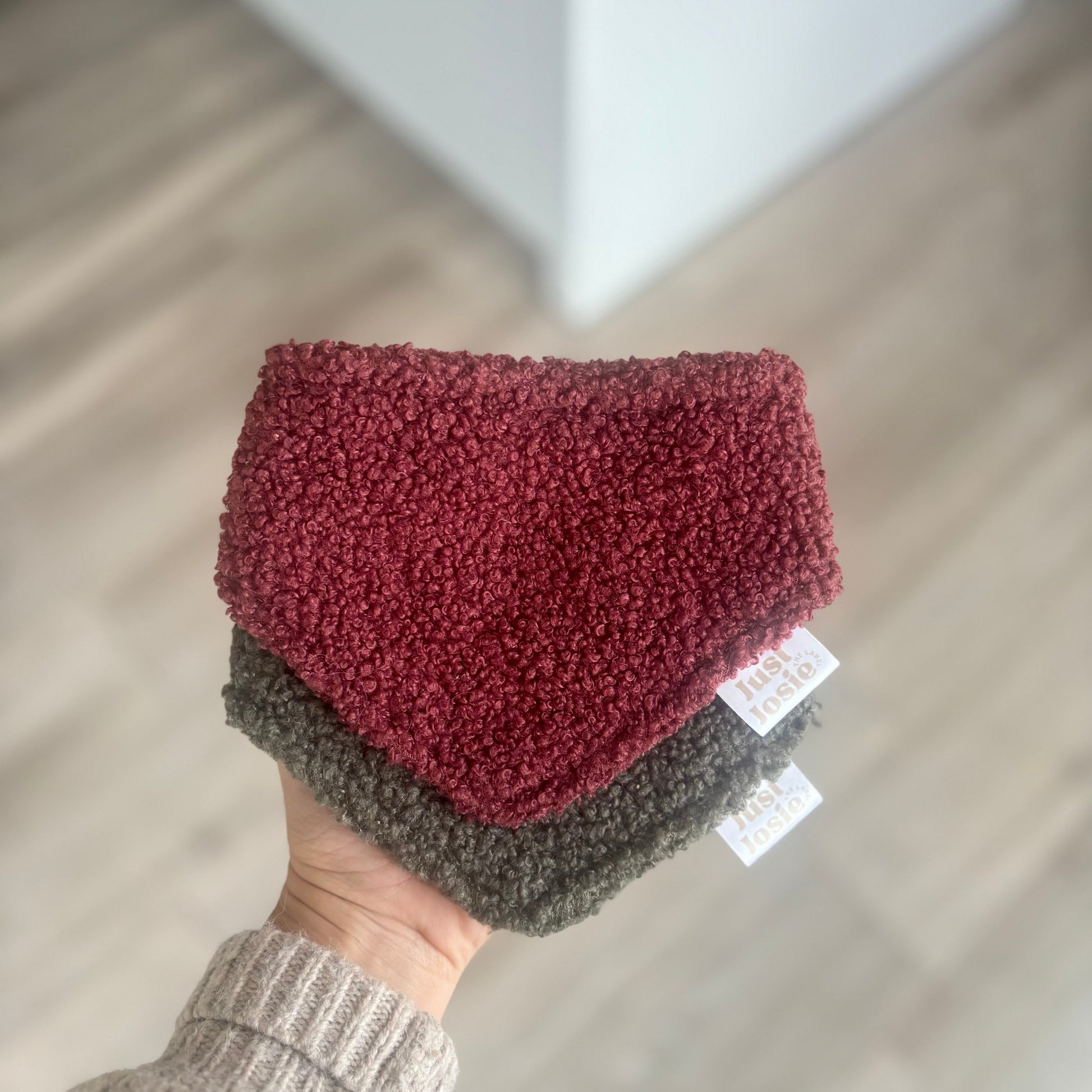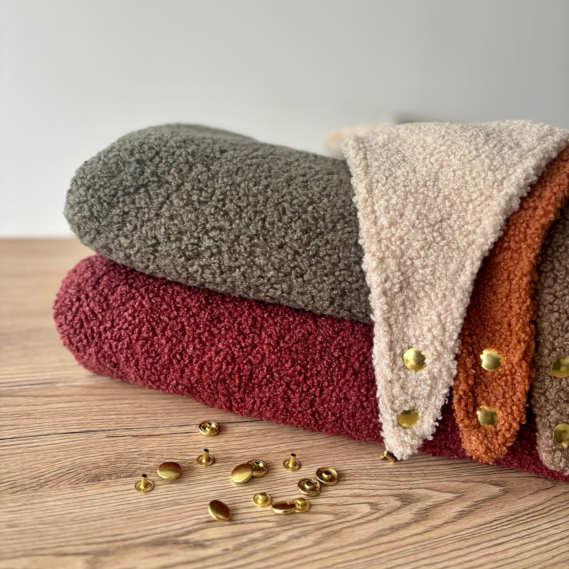 Die Halstücher aus Bouclé Soff sind sehr kuschelig und werden mit goldenen Druckknöpfen geschlossen. Für den Verschluss nutzen wir ausschließlich hochwertige Knöpfe, die den Vorteil bieten die Größe etwas zu verstellen.