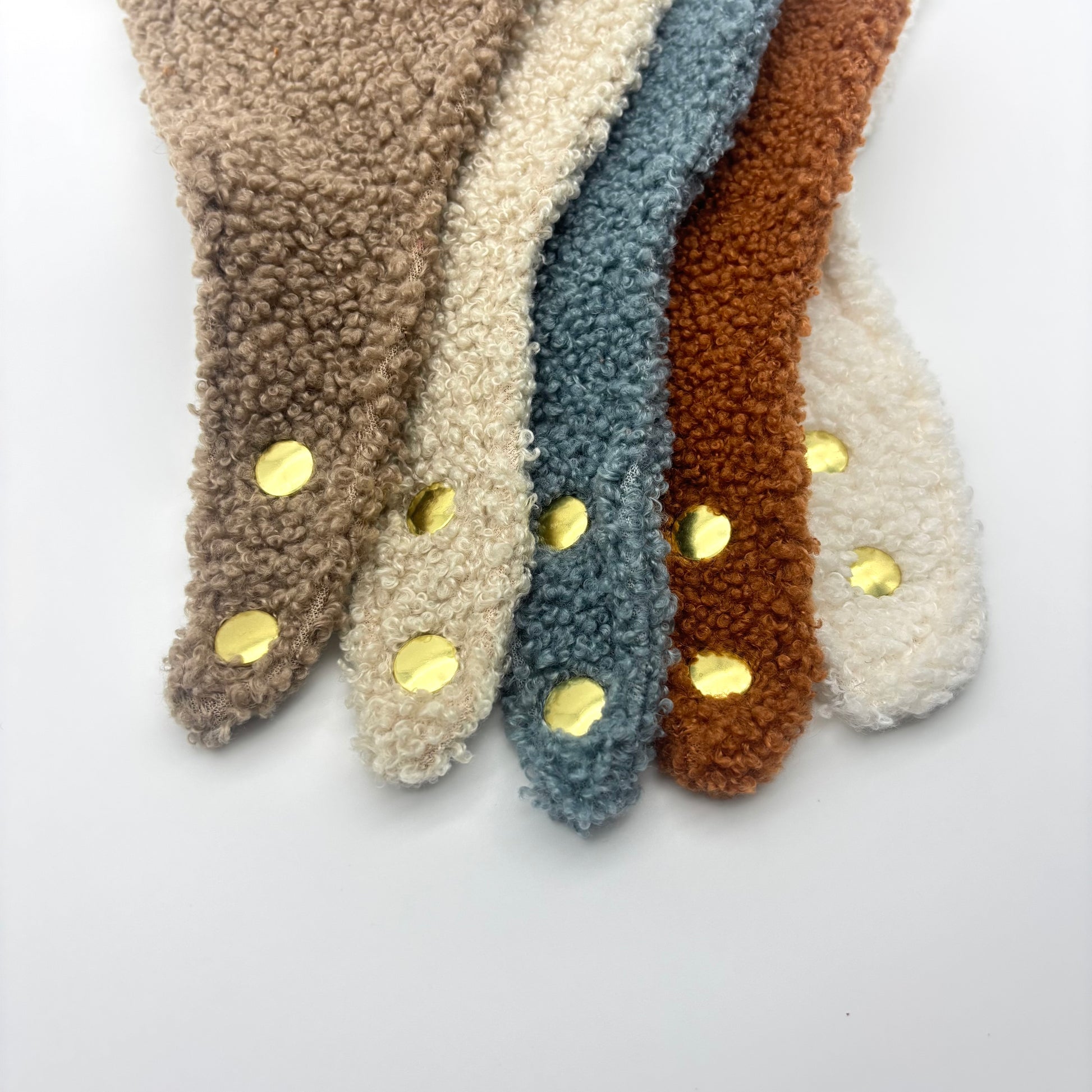 Die Halstücher aus Bouclé Soff sind sehr kuschelig und werden mit goldenen Druckknöpfen geschlossen. Für den Verschluss nutzen wir ausschließlich hochwertige Knöpfe, die den Vorteil bieten die Größe etwas zu verstellen.