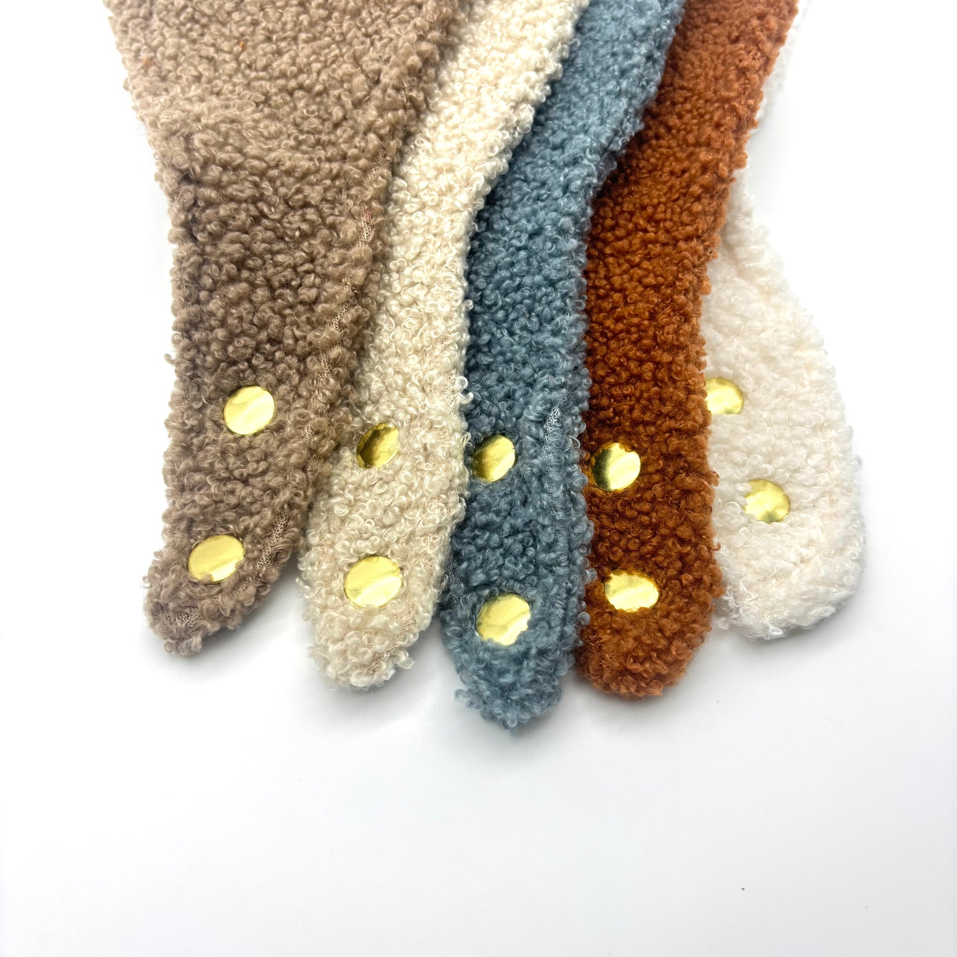 Die Halstücher aus Bouclé Soff sind sehr kuschelig und werden mit goldenen Druckknöpfen geschlossen. Für den Verschluss nutzen wir ausschließlich hochwertige Knöpfe, die den Vorteil bieten die Größe etwas zu verstellen.