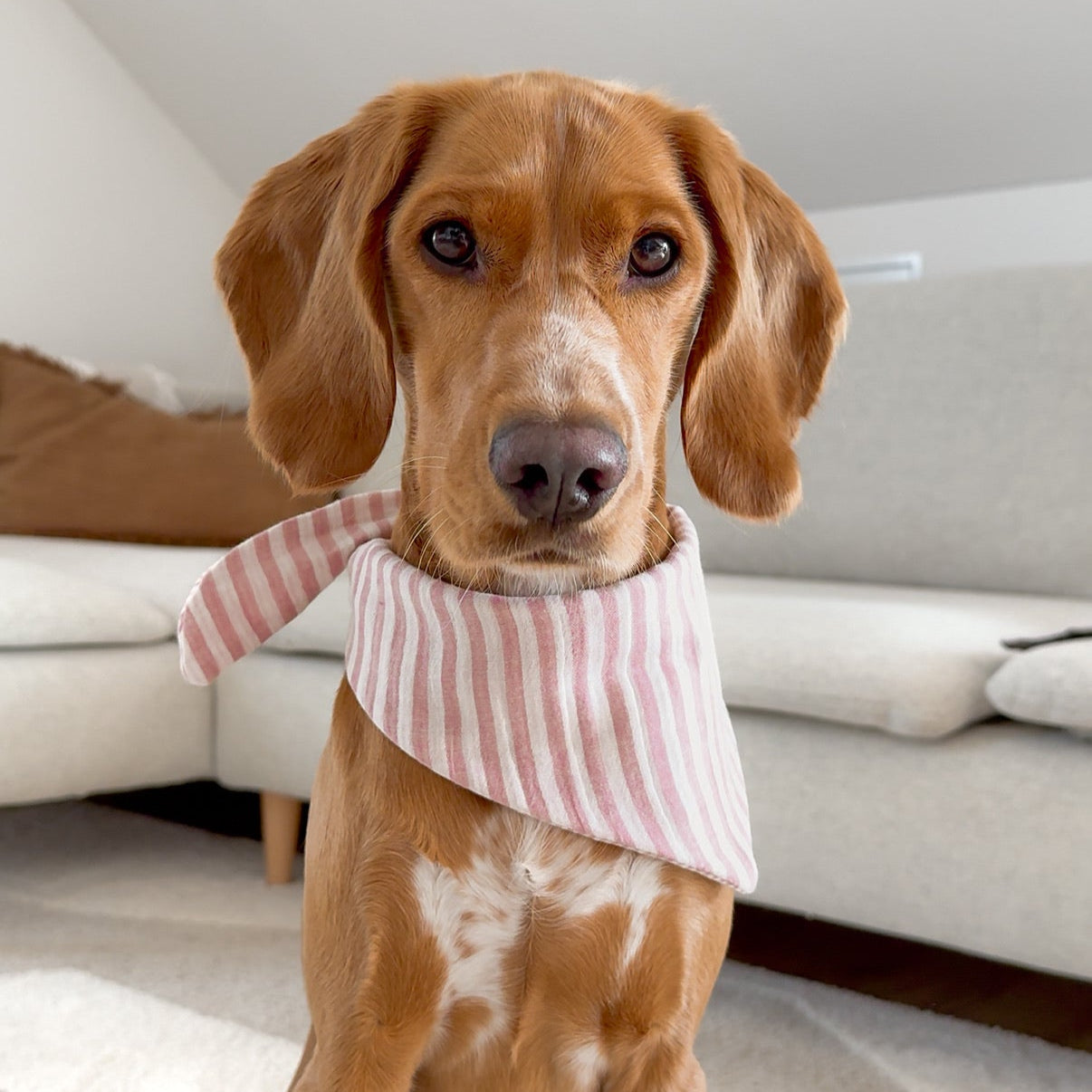 Das Halstuch ist aus einem leichten Musselin Stoff hergestellt und bietet somit einen sehr angenehmen Tragekomfort für deinen Hund.