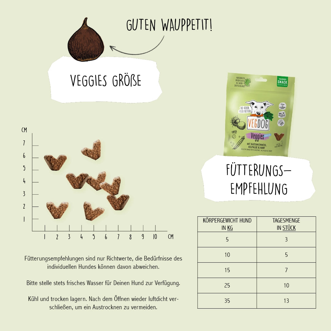 Gesund Snacken? Ja, das ist möglich. Und zwar mit unseren VEGGIES skincare. Die besondere Rezeptur mit Kelpalge und Hanf spendet viele wichtige Nährstoffe. Allen voran essenzielle Omega-3- und Omega-6-Fettsäuren. Diese können positiv auf Haut und Fell wirken - perfekt für kuschelige Stunden mit deinem Vierbeiner.